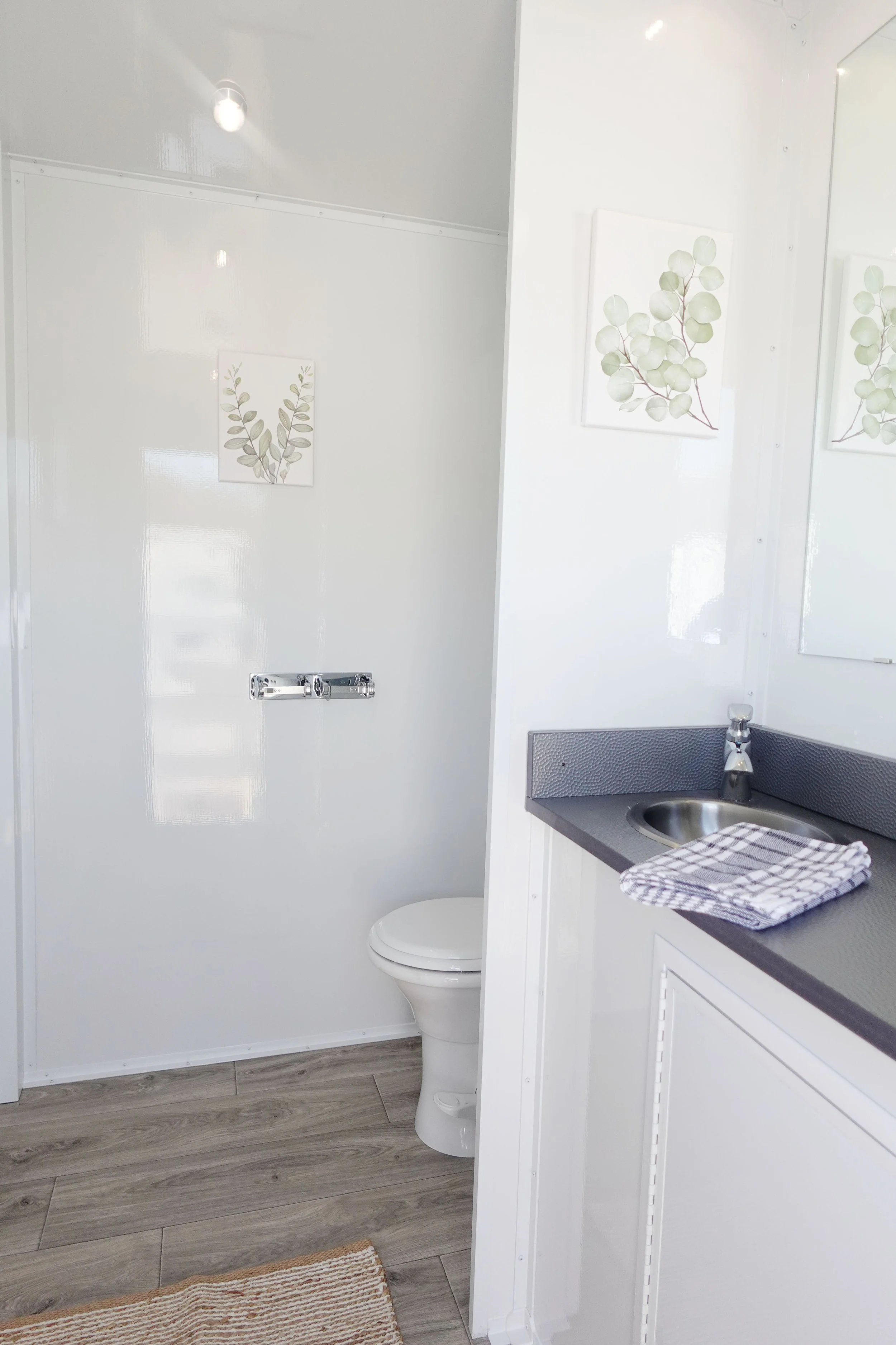 The 2-Stall restroom trailer is a compact, practical option designed for smaller events and sites where space is limited. Its streamlined footprint allows for flexible placement while still providing a clean, comfortable restroom experience for guests.