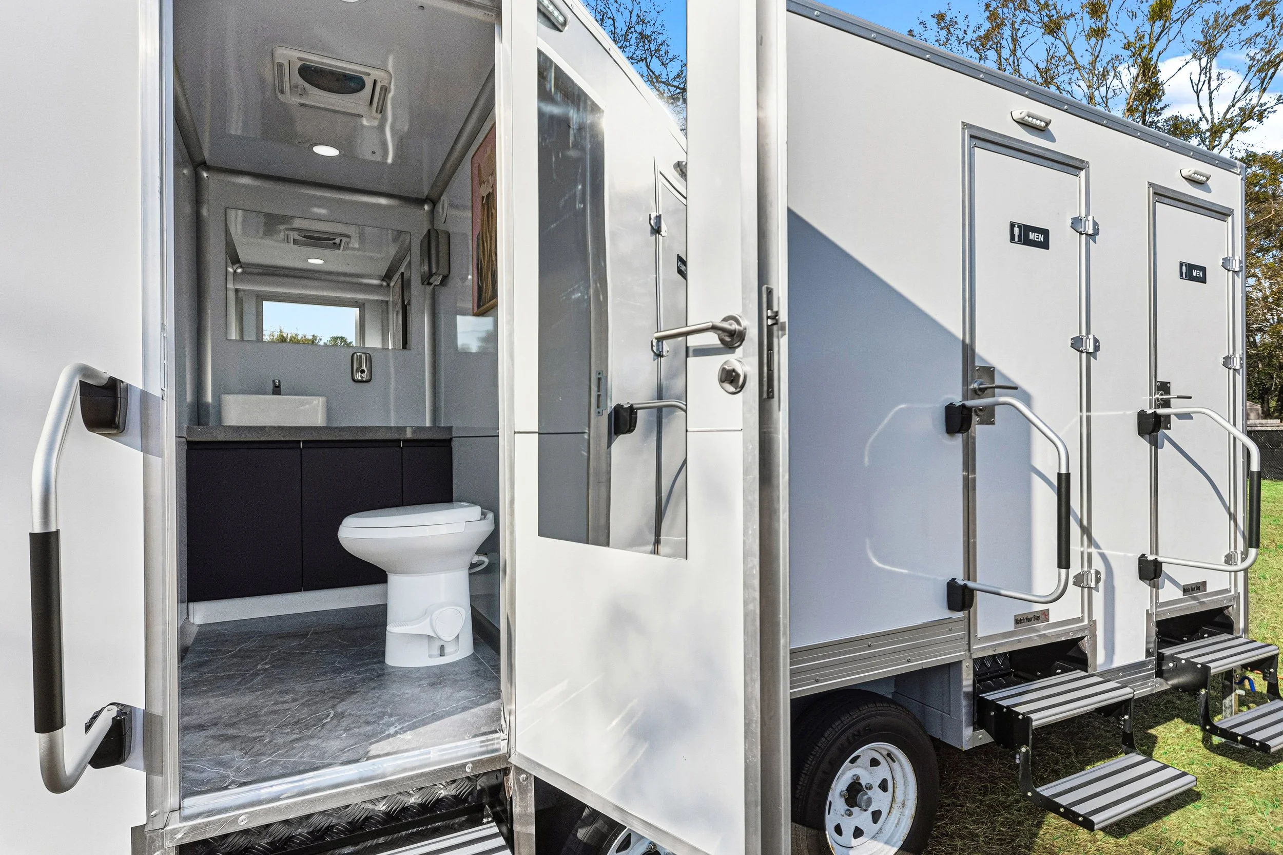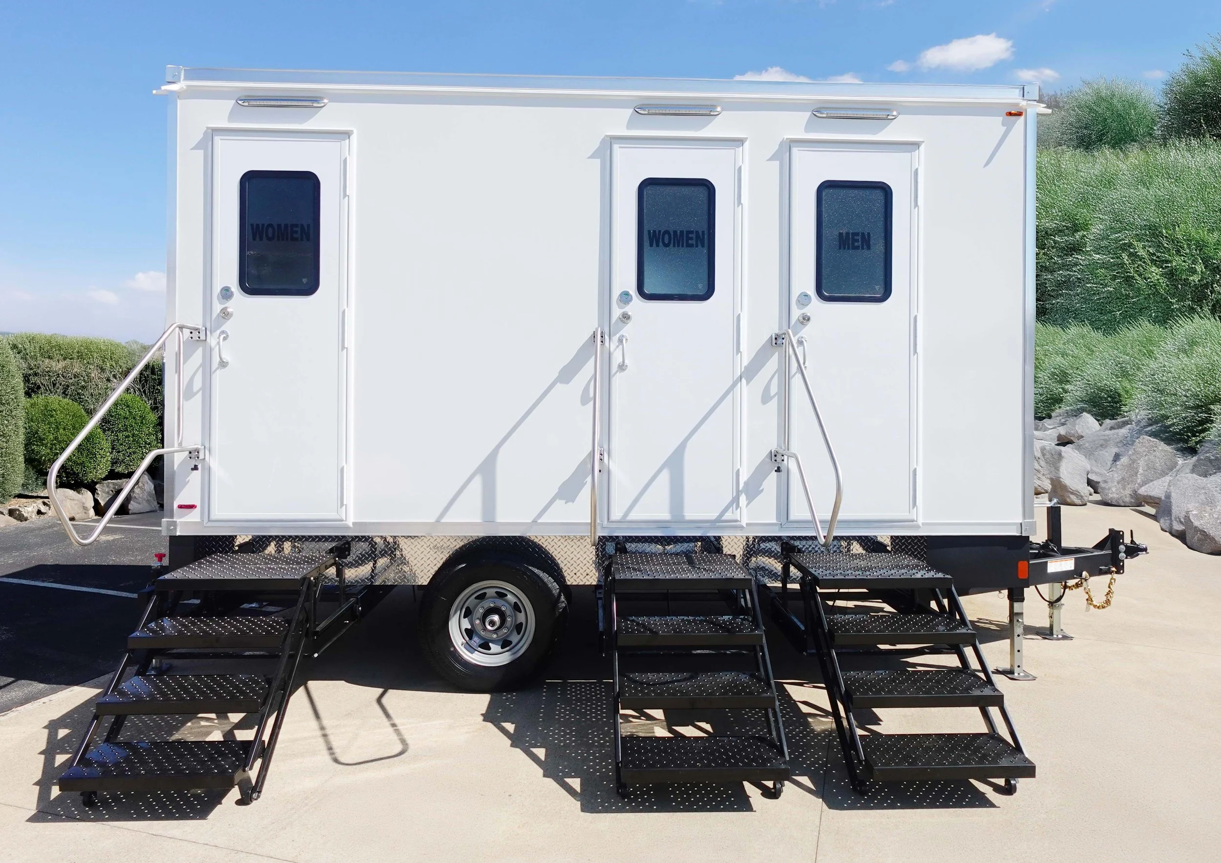 The 3-Stall restroom trailer offers a balanced combination of capacity and efficiency, making it a versatile option for a wide range of events. Its compact design allows for easy placement while supporting consistent use throughout the day.