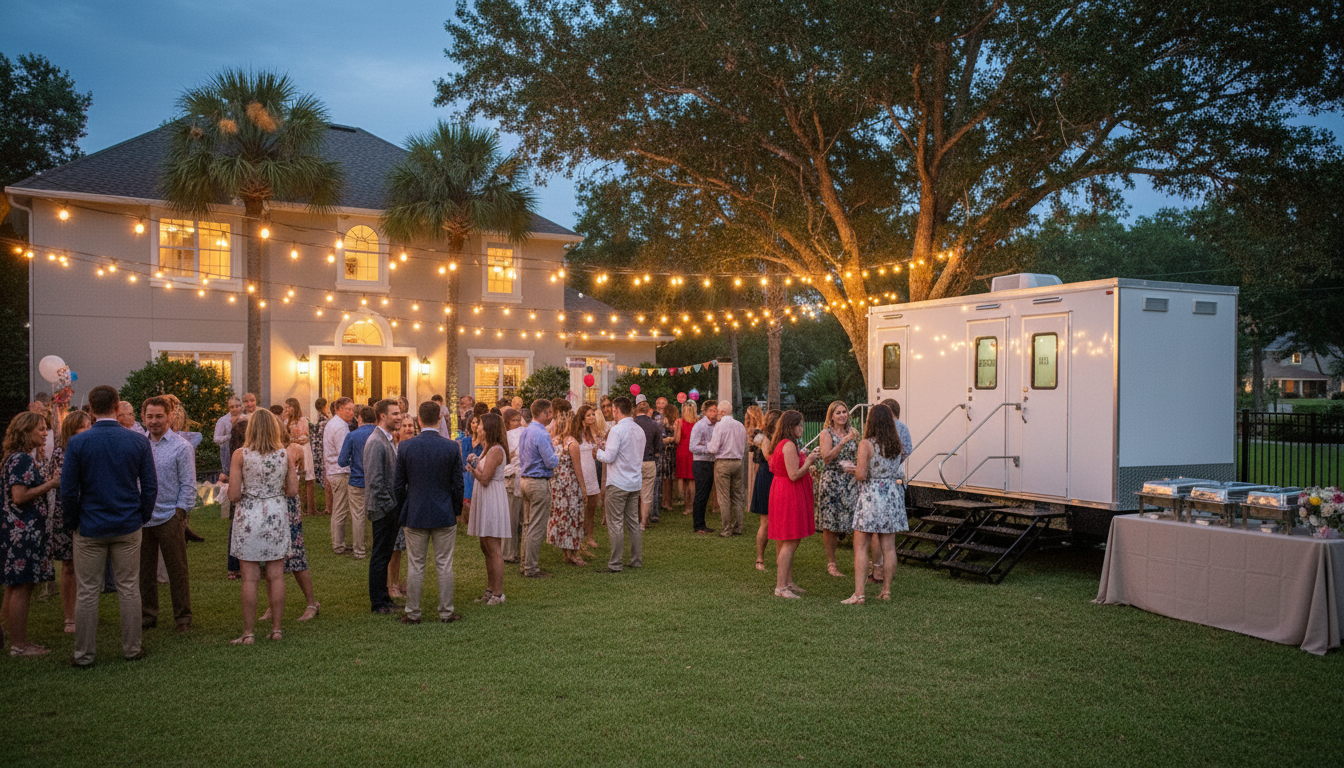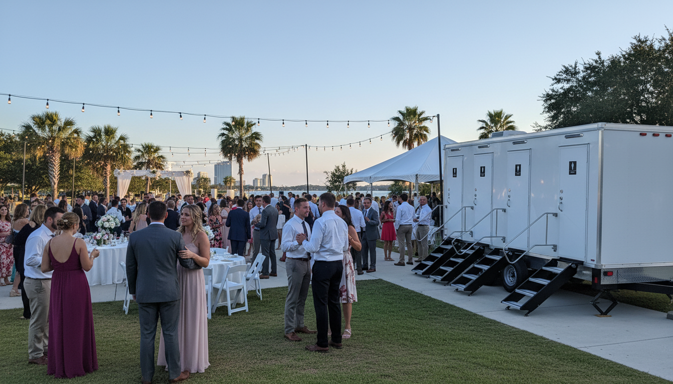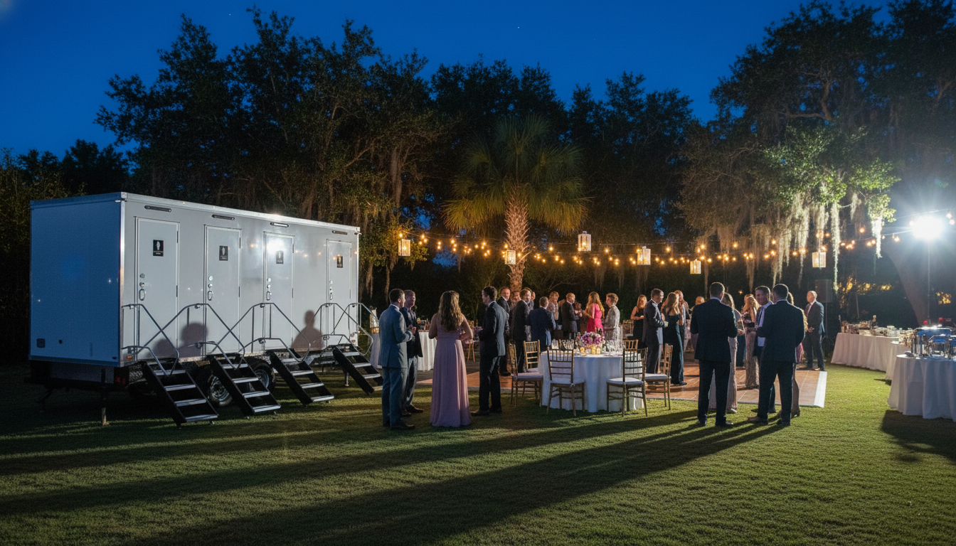 Clean, comfortable restroom trailer rentals for weddings, private parties, and festivals throughout Jacksonville and Northeast Florida.